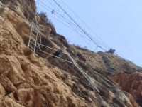 Superada la escalera, sigue subiendo vertical, otro desplomado para llegar al Puente. Después de cruzar el puente la Ferrata ya casi termina.