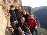 Sorpresa mía, me encuentro a 4 personas, que van a realizar la Ferrata. Y resulta que son los creadores de las ferratas más duras y que más me gustan!!! Entre ellos está Urquiza y Olmo Soler!! (creadores de la Cast Urquiza Olmo, la Olmo Soler – llevan sus nombres precisamente- y las espectacular Feliz Navidad y Canal del Mejillón en Montserrat). Brutal encontrármelos ahí!!!