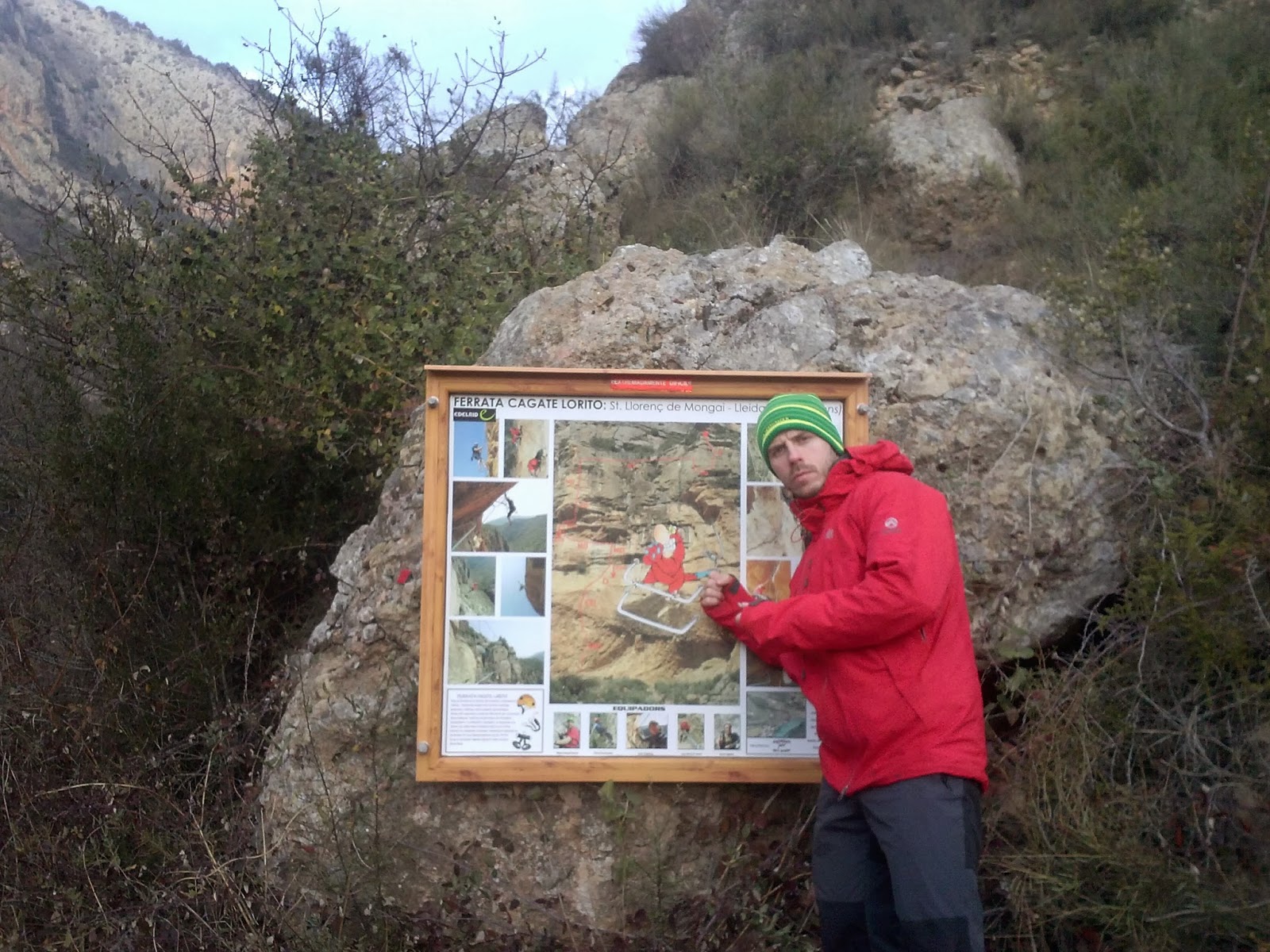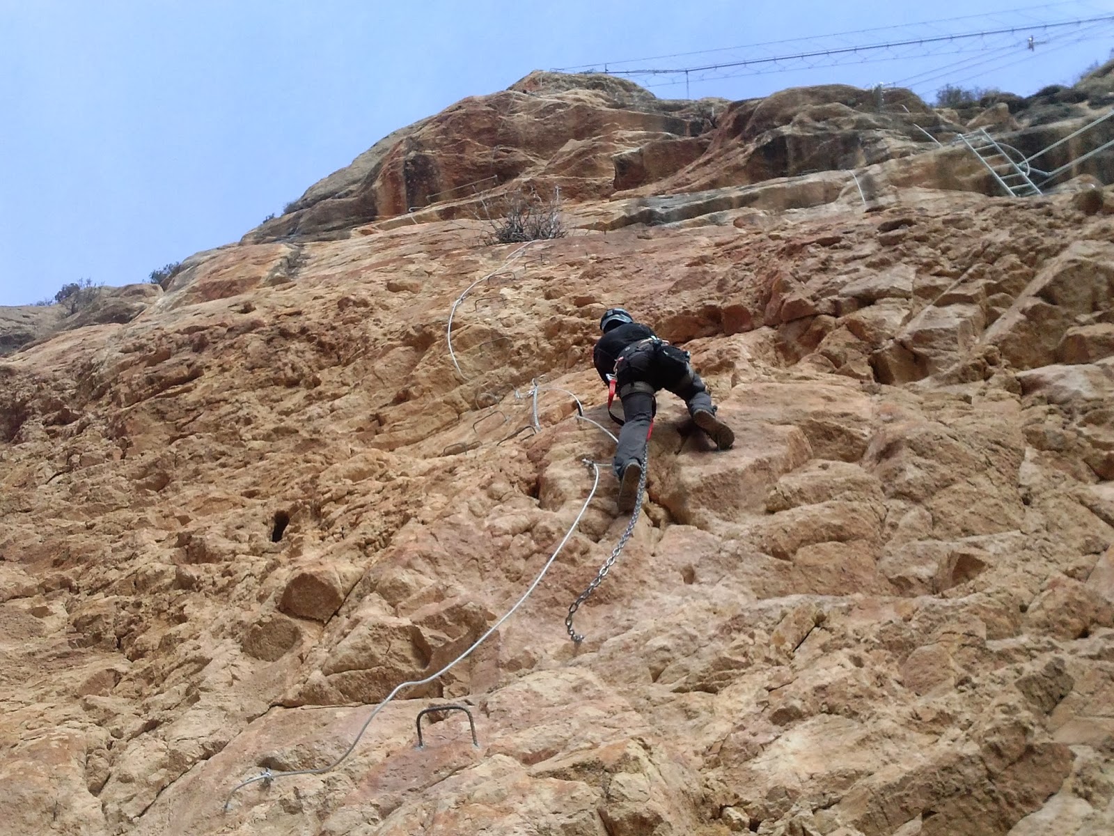 Sorpresa mía, me encuentro a 4 personas, que van a realizar la Ferrata. Y resulta que son los creadores de las ferratas más duras y que más me gustan!!! Entre ellos está Urquiza y Olmo Soler!! (creadores de la Cast Urquiza Olmo, la Olmo Soler – llevan sus nombres precisamente- y las espectacular Feliz Navidad y Canal del Mejillón en Montserrat). Brutal encontrármelos ahí!!!