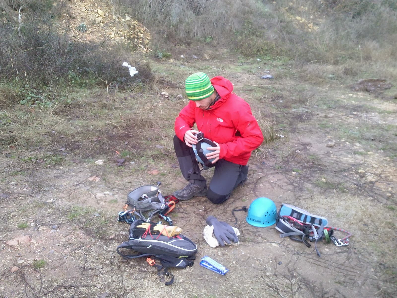Sin más, preparo todo el material y empezamos el acceso a la Ferrata.