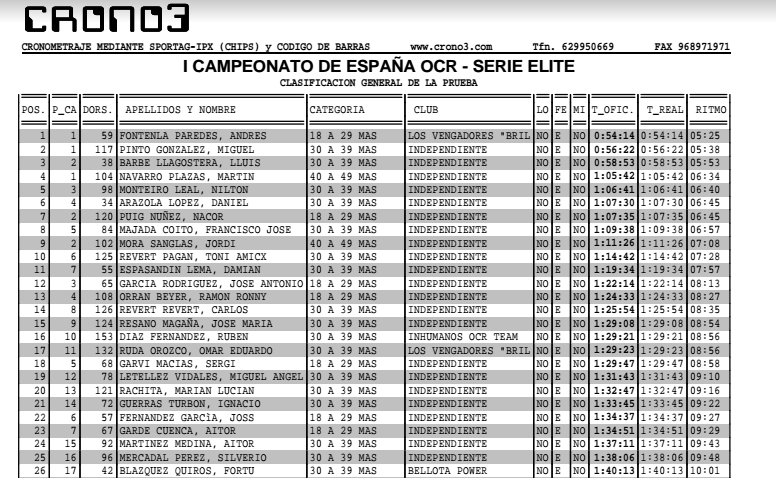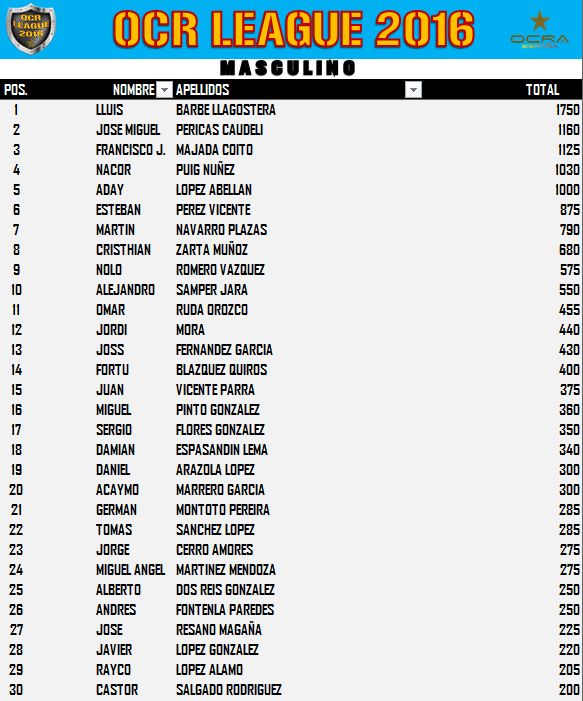 | Liga Española OCR | España | 2016 | 1º | Ver clasifiación |