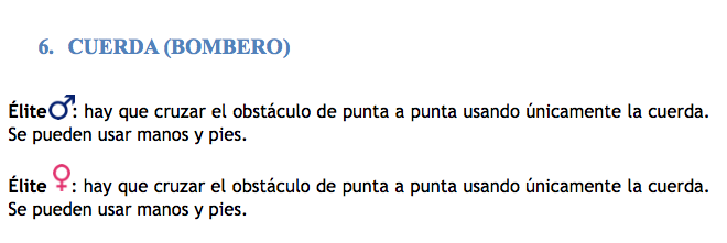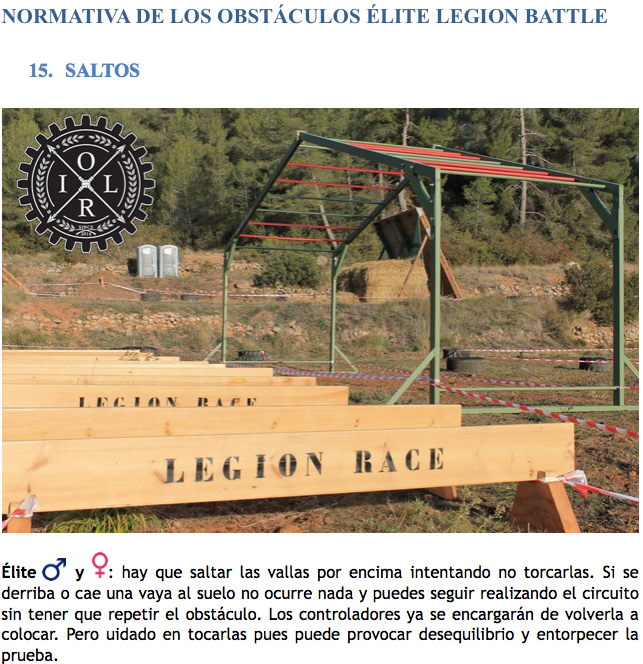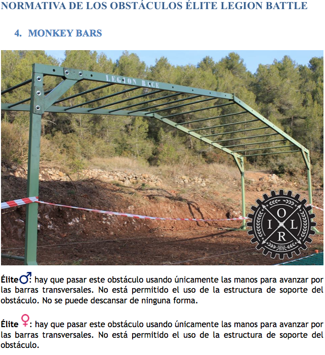 Todos los corredores de la Tanda Élite deben superar los obstáculos tal y como se rige en la normativa siguiente, sin ningún tipo de ayuda (ni externa ni interna). Esta normativa se basa en la Normativa OSO (Obligatoriedad de Superar el Obstáculo), en la cual el obstáculo se debe superar; en caso de no hacerlo se podrá repetir sin entorpecer el paso al resto de corredores. Si tras un número x de intentos el corredor no ha sido capaz de pasarlo, el controlador de dicho obstáculo será quien dejará al corredor seguir la carrera, sin embargo el tiempo de finalización de esta NO se tendrá en cuenta en los tiempos clasificatorios; es decir, se le contará como “Intento fallido” (habrá perdido un intento).