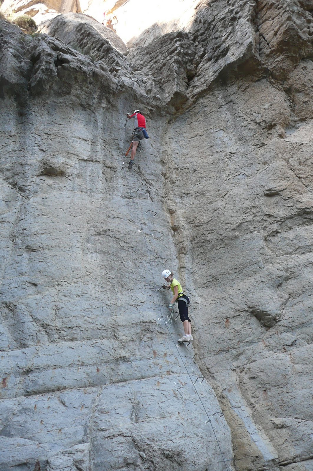 Aquí podéis observar las diferentes Vías Ferratas y Canales Equipadas que he ido haciendo. Hay que diferenciar entre ambas. Las Vias Ferratas (imagen) disponen siempre de una cable de vida donde puedes ir sujeto con un disipador y un arnés. Normalmente son menos duras físicamente y si caes pues nada un tironcito pero estás bien sujeto. Hay gran variedad de vias y pueden tener de todo, cuerdas, grapas metálicas, peldaños, puentes varios, etc. Por el contrario las Canales Equipadas (imagen) normalmente son Canales o Cañones (producto de la erosión del agua en los macizos montañosos) los cuales sólo se equipan con cuerdas o cadenas. Son muy duras pues se deben subir prácticamente sin sujeción ni arnés con el evidente riesgo que existe si no aguantas y caes, aunque hay técnicas de escalada que posibilitan hacerlas de otras formas. Yo siempre las hago a pulso que es como más me gustan. Muchos de estos canales se pueden hacer también de bajada, ya que estan equipados con chapas para bajarlos con la técnica del Rápel; se les llama entonces Barrancos. Hay Barrancos secos (imagen), sin agua, y Barrancos con agua (imagen), que son imposibles de subir y solamente se hacen de bajada.